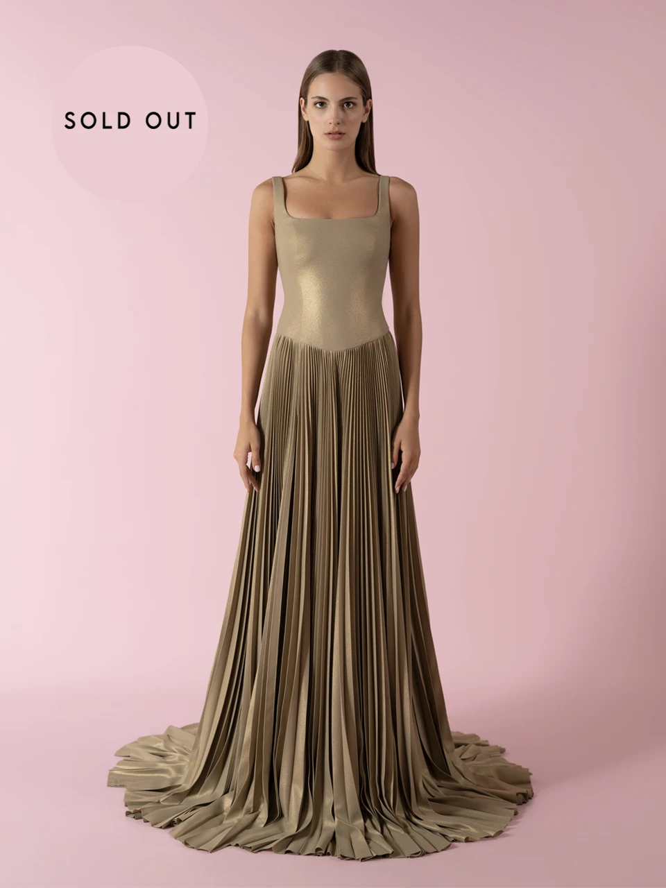 An elegant one-shoulder design highlighting the neckline and creating an eye-catching asymmetrical effect. The fabric is crafted to flow effortlessly, ensuring a fluid and graceful silhouette that moves beautifully with every step. This dress features flower embroideries adding a touch of nature-inspired beauty.